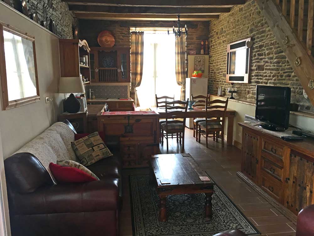 Our two bedroom cottage was a hayloft being used. Unfortunately we had to remove the wooden shoot as it was where the stairs were being situated and it was falling to bits. A few replaced timbers and we were good to start the renovation. This became a joy and we were really happy with the quirkiness of its layout. Both bedrooms are spacious with all you would need and Tv/Dvd. Kingsize beds are in both but they will support a z - bed/cot if required. Despite two bathrooms only one bedroom has an ensuite but we have added a Wetroom with WC on the ground floor. For up to five persons we feel there is plenty of room for entertaining, cooking and dining.here is good wifi and tv covering most European channels, British and French Tv.